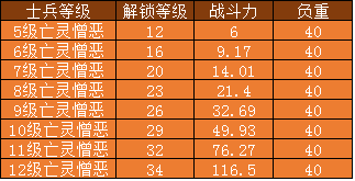 憎恶各等级战斗力与负重: