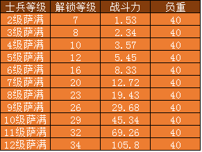 萨满各等级战斗力与负重: