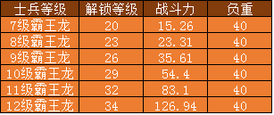霸王龙各等级战斗力与负重: