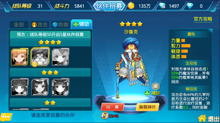 队伍等级1-49级,可招募2.3.4星少女伙伴。