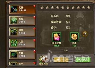 玩家可以通过消耗强化水晶,多次强化某个装备部位。装备强化可以百分比提升装备的基础属性,更换装备时强化等级保留。