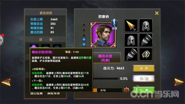 欧康纳的职业是刺客,护主技能为“嗜血杀怒”,可以大幅提升玩家的物理攻击、魔法攻击、生命上限以及闪避,其品质更是达到了完美级别,可以说是非常不错的。