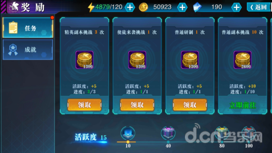 玩家每天在完成任务时会获得一定的活跃度,不同任务奖励的活跃度也不尽相同,每当活跃度达到一定要求值时玩家可领取额外奖励,活跃度会每天重置清零。