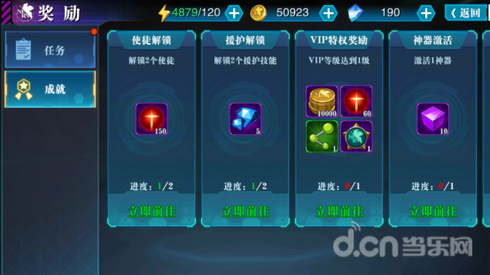 玩家在游戏中达成特点的要求或目标即可完成成就,完成成就可以获得大量的游戏资源材料等,与任务不同的是,所有成就玩家只能完成一次,玩家同样可以在界面的奖励按钮中浏览成就的内容。