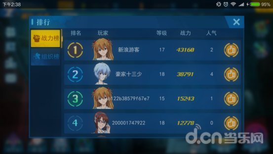 玩家可以通过排名系统查看个人和组织在服务器中的战斗力排名。