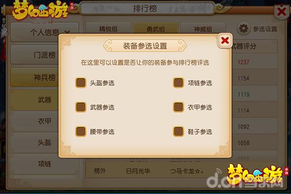 排行榜新增神兵谱,六种装备将根据使用等级(拥有简易特效则等级-5)分别在精锐组(40-69)、勇武组(70-89)、神威组(90-100)进行排行评比。