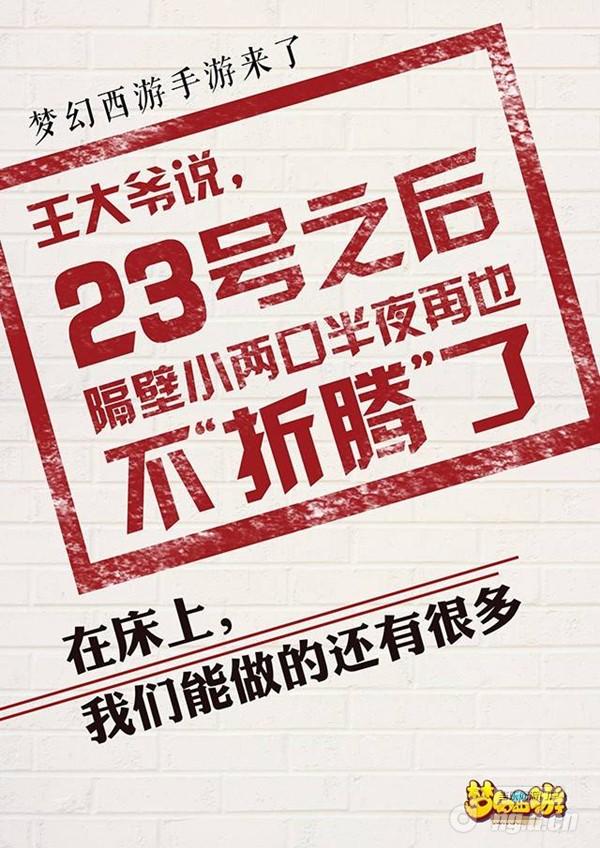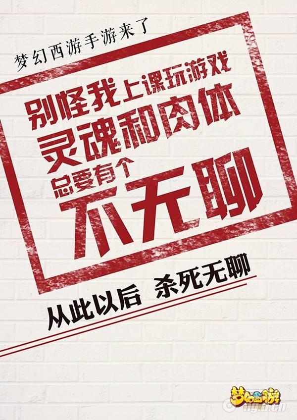 就在不久之前,《梦幻西游》手游推出的公测倒计时海报掀起了互联网上文科生与理科生的大撕逼,而这一次,梦幻手游又大尺度出镜,上位成功!这一系列海报采用了大字报的方式,目标受众非常明确地指向了个性叛逆的年轻人。现在的年轻人是什么样子的?爱挑战,特立独行,喜欢新鲜感,最重要的是——杜绝无聊。整组大字报正是通过对多个情境的描述表达了年轻人的心态,并借以将梦幻西游手游的品牌调性展现在目标受众面前,与此同时带来的另一个诉求是:通过游戏,你也将收获属于年轻人的那份独特的快乐,或是友情,或是爱情。