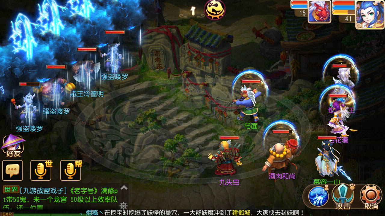 【贼王战斗】领取宝图任务之后,点击任务栏可自动寻路至贼王处与贼王作战,贼王一般携带2-3个喽啰,能力不高,玩家在带有伙伴的情况下可以轻松应对。击败贼王之后就有一定几率获得藏宝图,虽然不是百分之百获得,但是获得的几率相对于端游出图率高很多。