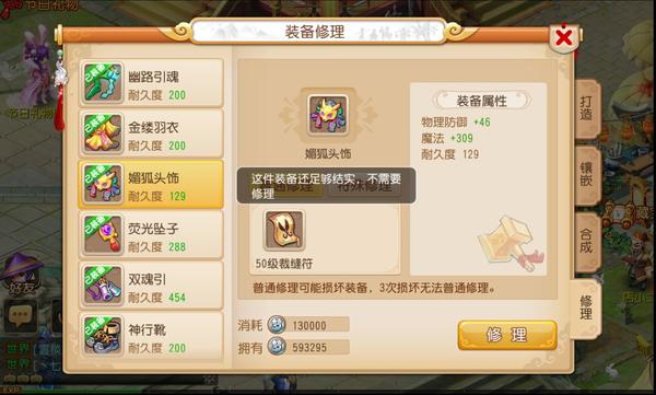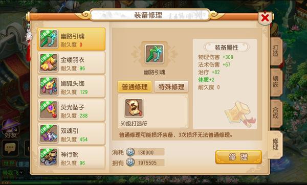 《梦幻西游》手游装备普通修理和特殊修理