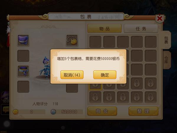 3、行囊每次扩展的价格不同,每次扩展需要花费的银币如下: