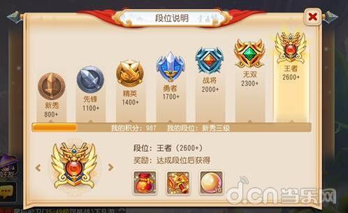 新秀、先锋、精英、勇者、战将、无双、王者,王者为最高荣耀。