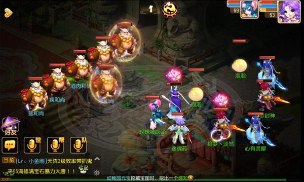 严格来说,酒肉2和酒肉1相比,并没有太大的区别,但是减少了相应的治疗能力,而是换成了两个方寸山,这使整个队伍的干扰能力大增,所以如果运气不好,开局就封住了己方的普陀山或阴曹地府的话,很容易就会全线崩盘。所以在这里,建议团队中的地府在第二回合,如果团队血线比较稳定,可以开一个鬼眼来提高团队的抗封能力。然后你们的方寸山应该优先封住对方的方寸山,防止他们破坏你的团队输出节奏。而大唐官府则可以集中点杀主怪,然后再以点杀狮驼岭,降低整个团队的治疗压力。这里提供给玩家一个在60级剧情中非常有用的小窍门:由于每场战斗中,玩家可召唤的召唤兽数量非常有限,65级可携带的吸血鬼在其中能够发挥重要的作用,它的鬼魂术能够使自己在死去后,还能满血复活,保证团队尽可能减少在召唤兽上的减员。