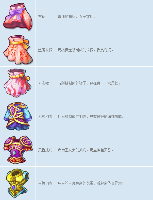 根据装备所要求的性别分为两类,主要起到伤害保护和增强体质的作用。