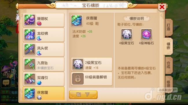 腰带可以镶嵌的宝石有黑宝石、光芒石和神秘石。神秘石在手游里修改了效果,可以增加抵抗封印,但是作为封系,一速相当重要,除非队伍里有了一速方寸,不然腰带和鞋子绝对要选择黑宝石!当然队伍里有了1速方寸的话,你就可以卡速了,腰带上光芒石增加血量是个不错的选择。