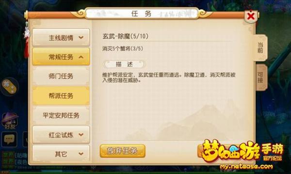 《梦幻西游》手游帮派任务,进入帮派的每个成员即可领取,任务简便奖励丰富。