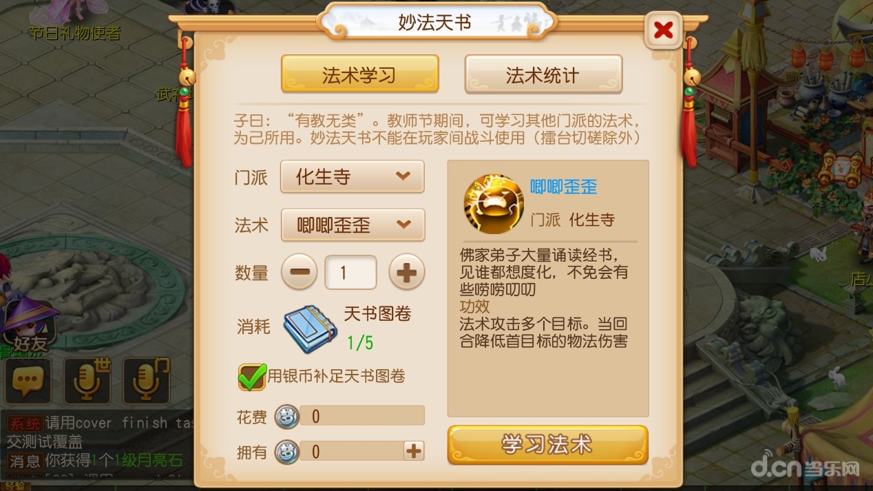 对于许多玩家来说,想要体验其他门派的法术,要么转门派,要么则是创建新号,而现在,玩家有了第三种选择!在活动期间,玩家只需完成感谢师恩、门派试练活动,或者在商会-杂货中进行购买,就能获得妙法天书道具。玩家只要使用妙法天书,就能够在战斗中释放一个特定门派法术,让自己能够体验其他门派的战斗快感!需要注意的是:妙法天书不能在除了擂台切磋之外的玩家PVP活动中使用,但是在一些高端PVE战斗中,合理使用妙法天书,能够让玩家获得意料之外的惊喜!