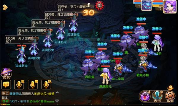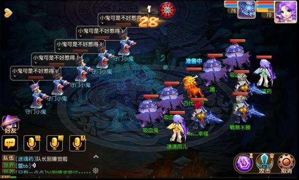 在本场战斗中,唯一需要注意的是,鬼喽啰全部是狮驼岭(但是攻击力不高),孟婆身边的两个鬼侍女HP比较多,而且在孟婆倒地之后,鬼侍女会复活孟婆。考虑到孟婆本身的输出并不高,玩家可以考虑先清小怪在解决孟婆。(类似于混世魔王副本中最后一关的打法)