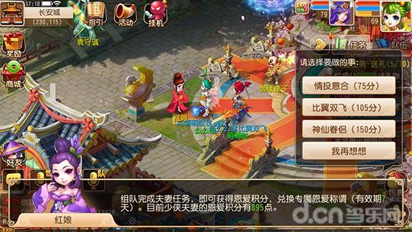 领取任务:夫妻双方可以组队找长安城的红娘(228,115),通过交谈领取任务。