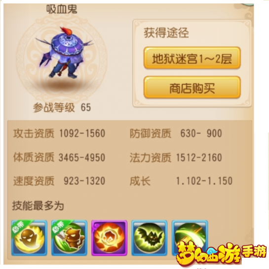 吸血鬼是所有玩家合宠的第一选择,不论你是69还是89或者100级的玩家,因为吸血鬼是唯一一只自带两个必带技能并且技能数是目前所有宠物里面最高的一只,同时吸血鬼的攻击,体力资质都还很高速度资质和法力资质也不低,唯一的缺点就是成长不是太高,防御资质低。