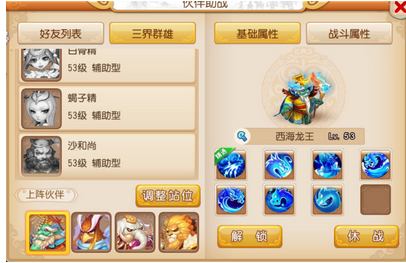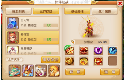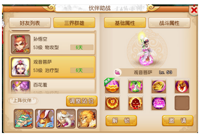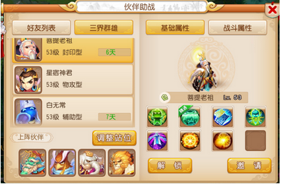 助战小伙伴分为几个类型:法功、物攻、封系、辅助、治疗;