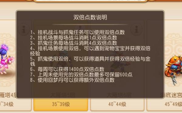 双倍需求:如选择消耗双倍点数,则每场战斗消耗4点双倍点数,消耗后可获得双倍经验和金钱,除此之外,第十环必得九转金丹。