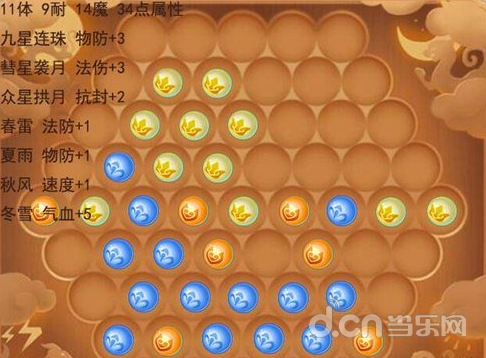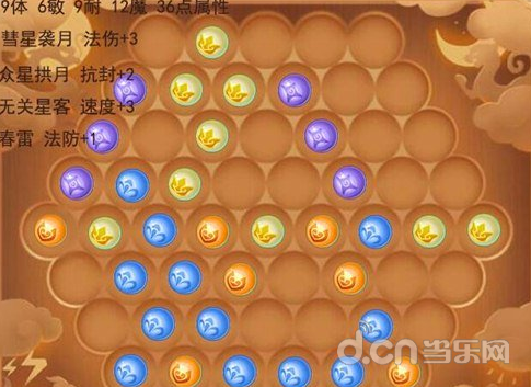 方寸比较倒霉,由于命宫这个天象是方寸必带天象,所以九星是被活活卡位卡掉了,毕竟法防和速度更重要,只能补全四时,剩下的可以多加一点敏。