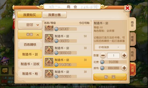 从这一点来说,市场上的珍品剑,卖到2万金币以下的,都是亏本的。当然,这个成本并非是一成不变的,玩家可以通过各种途径来免费获得这些道具,比如挖图、参加各种游戏活动、前尘旧梦等等。所以简单来说,如果你获得了你用不到的装备指南书,那么直接把它卖掉,而不是对其进行强化打造,指望其能够爆出极品让你一夜暴富,那是最稳妥保本的盈利模式。当然,如果你是活雷锋,那么用侠义值兑换强化石能够使你的打造成本大大降低。