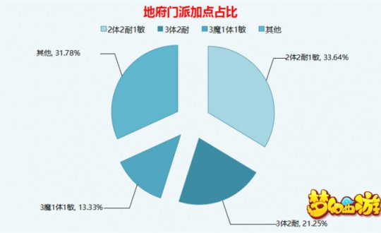从梦幻精灵方面得到的全服地府加点占比,绘制饼状图如下。(数据为前三类)