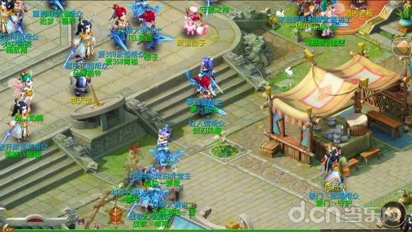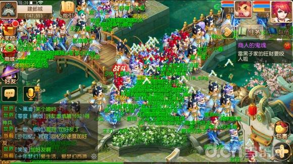 和PC端一样,手游《梦幻西游》还是采用2DQ版的人物设计,场景画面色彩搭配也很好。但是相信大家关注点都不在这里,因为茫茫多的玩家挤在狭小的屏幕使你很难找到自己。