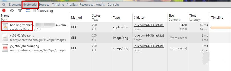 5:点击提交后在network会出现一个booking? 开头的请求,单击选择。