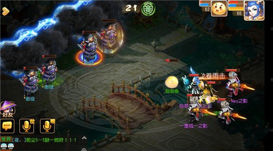 这关对面有6个怪,每次进入都是不一样的,中间的一定是大唐,最好的的情况是这样的:1大唐2狮驼3地府,其他情况很难过,如果只有2地府,也还凑合可以过