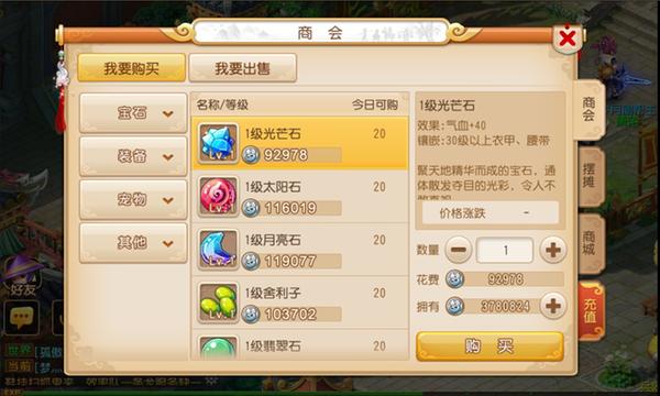 衣服:光芒石、月亮石、翡翠石、昆仑玉