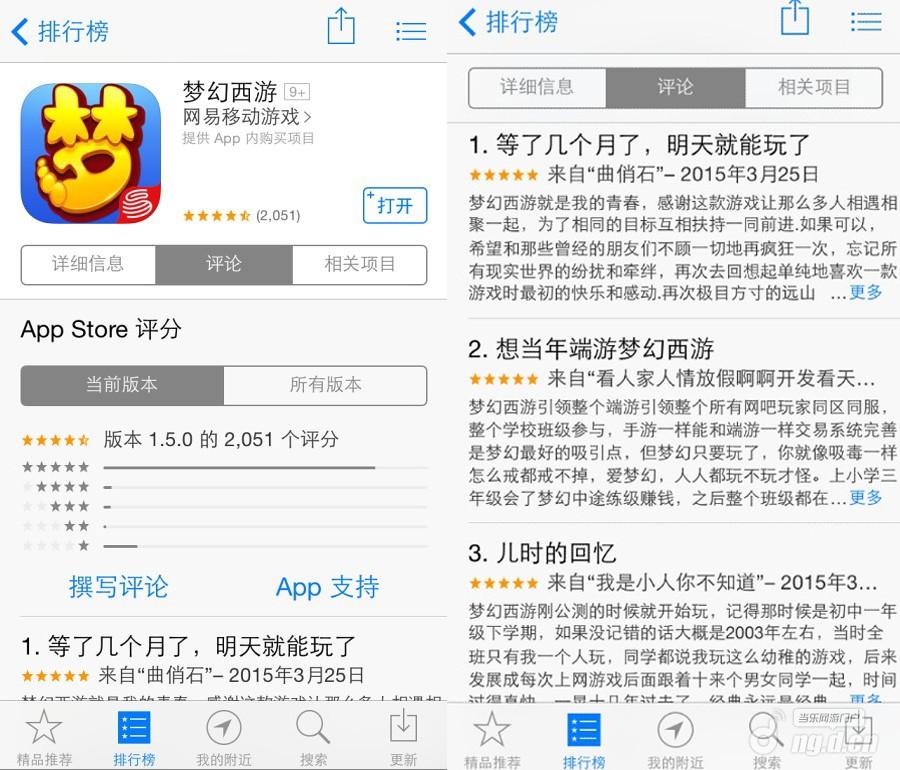 3月25日,《梦幻西游》手游客户端上架iOS平台,尽管距离开服尚有一段时间,但是无数玩家在发现了这一意外惊喜之后,还是第一时间下载客户端,并在其下留下五星评价,直抒自己的梦幻情怀。从端游到手游,从昔日的东海湾稚子到如今的武神坛巨擘,“梦幻西游”这四个字为一代又一代的玩家留下了难以磨灭的美好记忆,也正是这份记忆让手游上架在未经过大面积宣传的情况下,通过玩家的口口相传,便已攀升至免费榜51名。