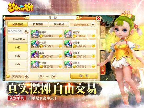 《梦幻西游》手游作为业内先锋,首次创立自由交易的经济系统,玩家之间可以自由交易装备等商品,更有摆摊功能,支持一键联系卖家,随时享受讨价还价的乐趣。让玩家用自己双手创造财富,不花分文也能闯荡其中!