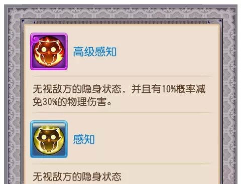 高级感知多出的附加效果,虽说并非一无是处,但是实用性不大,毕竟这个技能主要作用就是无视对手隐身状态,所以对平民来说能达到这一核心目的就行了。