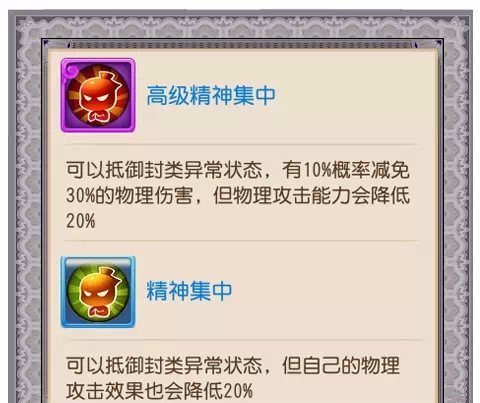 都是一样的抗封效果,高级的多加了10%的躲避,如果打法宠的话,精神就很好,但是攻宠就显得比较鸡助了。
