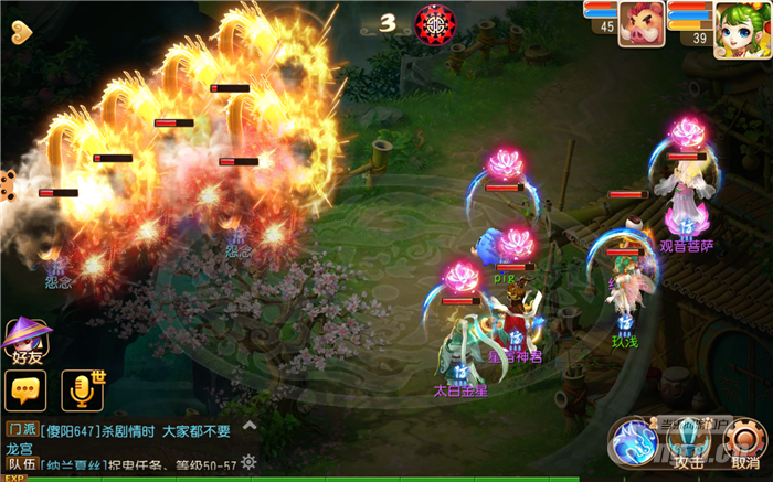 游戏里除了跟主线任务外,会随等级开放各个活动,师门任务、野外挖宝、押镖劫镖、钟馗捉鬼、比武大会,帮派系统、世界boss等等,数种玩法让你告别无聊。游戏里没有漫长的寻找NPC,点击任务自动传送,虽然很方便但是少了让人欣赏地图美景,还没看清身在何方,duang的一下就走了。此外有很多需要你组队完成的任务,顺便让你拓宽了社交,在游戏里加到好友一起做任务,再配上游戏的语音聊天系统,作战交流更方便。