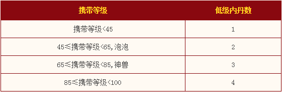 宠物可以学习的低级内丹数由携带等级决定。