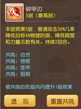 高级内丹遗忘后,其共鸣属性也跟随一起消失。