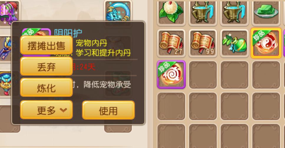 对自己不需要的内丹,除了可以摆摊出售给其他玩家以外,还可以对其进行炼化。