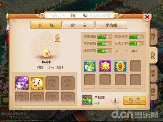 宠物炼妖可以分成三种操作,分别是:洗炼、学技能和合宠。