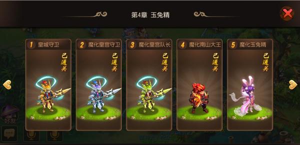 第四章:玉兔精 开启条件:通关第三章 开启等级:50级 关卡情况如下