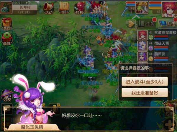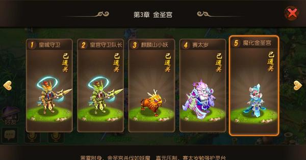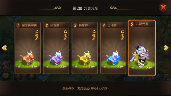再第四章的时候,前面四关很随意可以过,重点强调一下第五关,再打第五关的时候,首先封系先控制住南山大王,然后全力单法输出,从上至下清理小怪,三个小怪清理完毕之后,全力输出干掉玉兔精,最后再全力的打南山大王;
