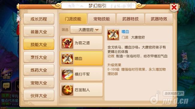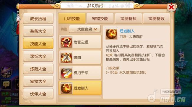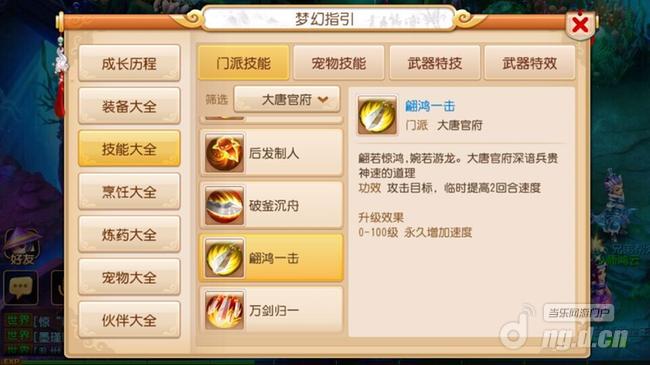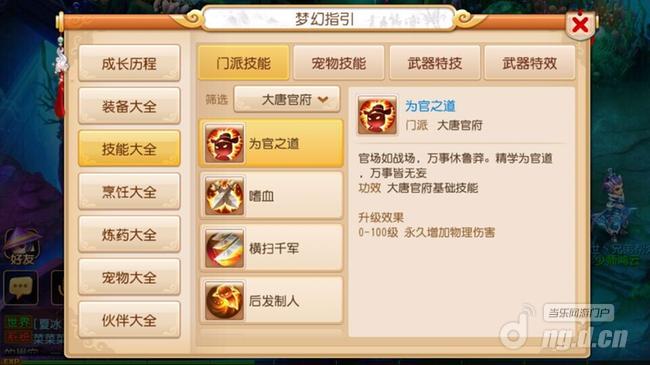 大唐官府的基础技能,升级之后能永久增加物理伤害