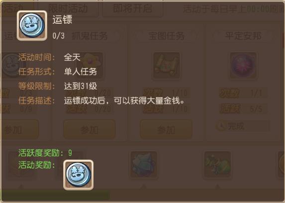 运镖:押镖可以获得银两噢,每天有次数限制是不错的获取梦幻银币途径;