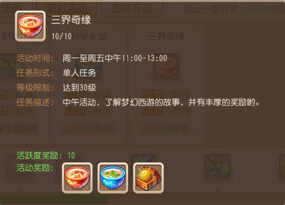《梦幻西游》手游日常活动和限时活动介绍