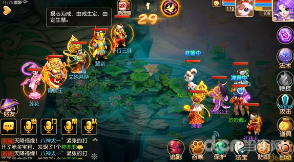 第25关助战也是不变的,主怪是方寸会封印如果封中左边的怪就会秒,如果不中左边的会接着封印,右边的怪是大唐怪会打被封中的目标,所以法宝宝集火大唐怪。