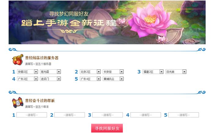 《梦幻西游》手游官方论坛“寻找同服好友”功能上线