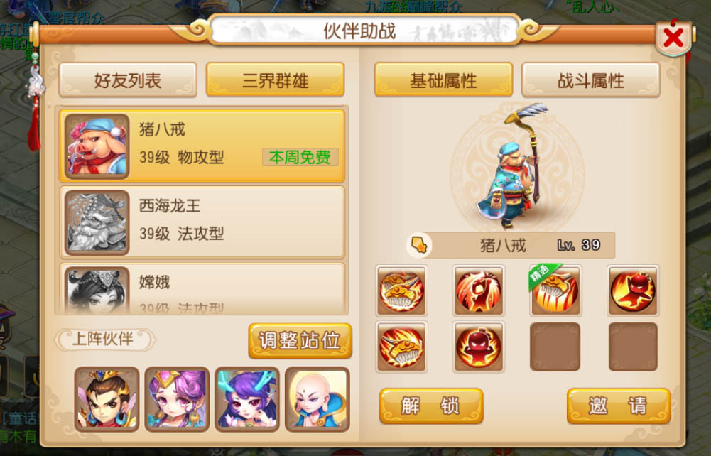 《梦幻西游》手游伙伴系统的第二个特色是,众多的伙伴赋予了玩家非常强的自主性。伙伴系统被简单分为了辅助型、法攻型、治疗型、物攻型、封印型五大类,但每一个伙伴因为自己的门派不同而拥有不同的门派技能。比如万圣公主就是典型的龙宫门派。而星宿神君则是大唐官府。除此之外,还有一些NPC拥有独属于自己的技能,比如猪八戒就有像“倒打一耙”这样的特色技能。所以玩家首先要确定自己需要哪一类型的伙伴,然后再研究每一个伙伴所携带的技能。