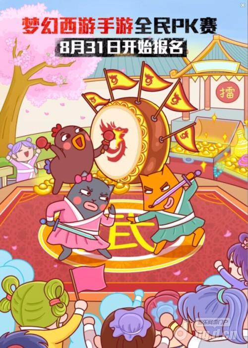 8月31日,全民PK赛报名通道全面开启,为了庆祝全民PK赛正式启航,小幺鸡、两条毛腿、郭斯特、孙渣等八大微博著名漫画家自发为梦幻手游送上他们的祝福,为全民PK赛加油呐喊!